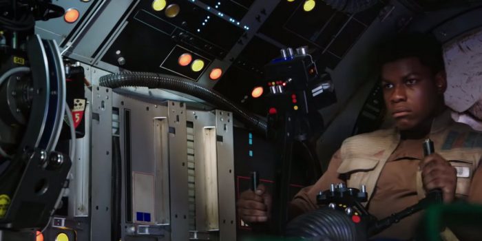 Finn was also on hand, looking fierce as he steadied himself to blast down some of the First Order’s TIE Fighters in this scene they filmed for the new movie!