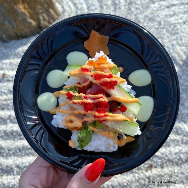 But, like, really though — how stinkin’ cute is this little sushi Christmas tree? We can’t stop staring at it! It’s a pretty good size for $6, but the flavors aren’t much of a standout. We love the dish for its looks, but it’s definitely style-over-substance on this little cutie!