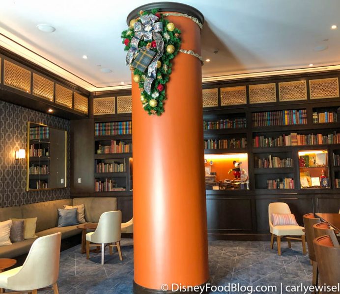 Designed to be a “gathering spot”, the lounge is the perfect spot to sit back and relax, surrounded by stunning decor (and even some holiday decorations!). Located next to Le Petit Cafe, the Voyageurs’ Lounge’s decor is inspired by the books that Walt Disney collected, and by his time in Europe! It looks like it even includes some books to read as well – how cool is that?!