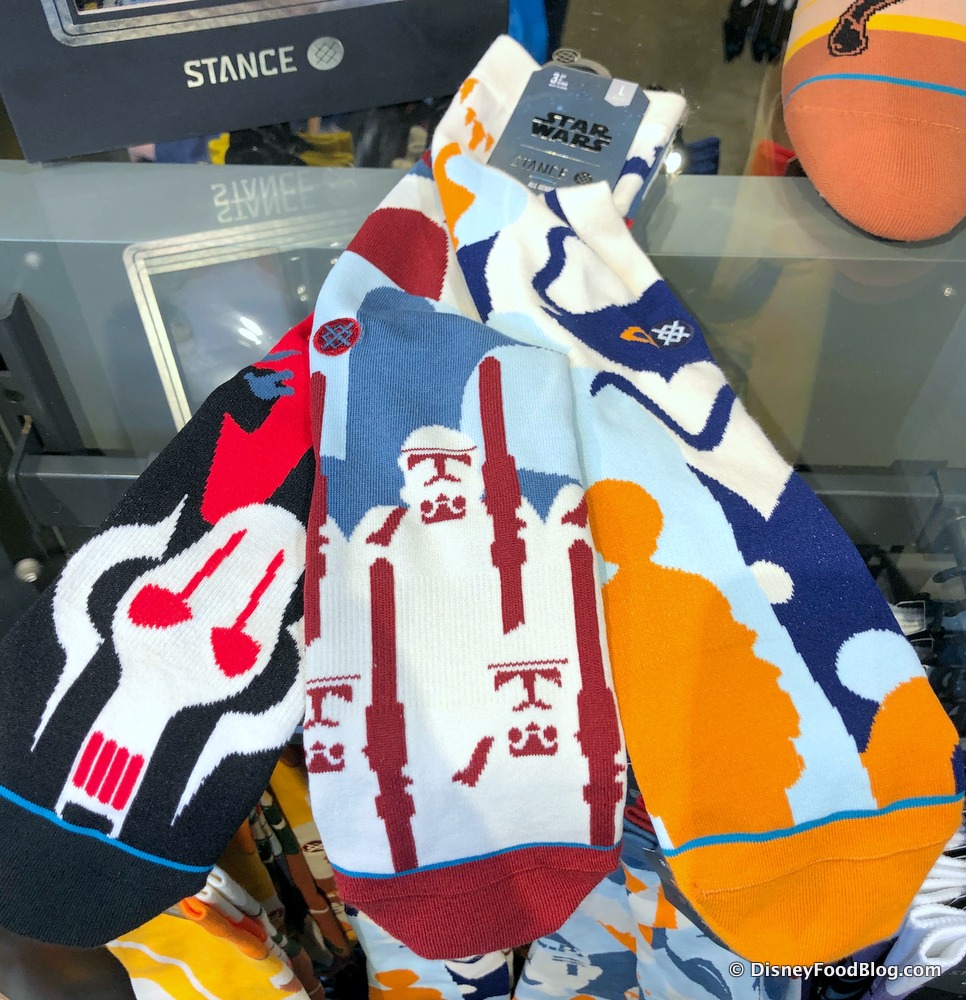 We found the socks at Disney Springs yesterday, so be sure to be on the look-out for ’em! Just don’t let the First Order see you wearing em’ — then they’ll know you’re with the Resistance! Well, unless you’re wearing the Kylo Ren and Stormtrooper socks together! Then you’ll probably be ahight!