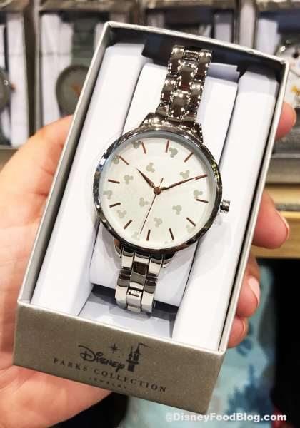 And this one just may be our favorite! The Matte Grey Mickey Disney Parks Collection Watch is in the most gorgeous hue of the color. With accents of gold, the face features a single solid Mickey head. We’re gifting this one to ourselves!