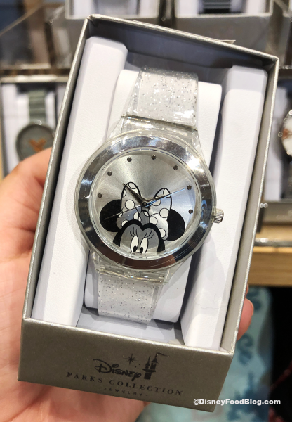 Opposite of Minnie, you’ll find the Mickey Disney Parks Collection Watch in all its multicolor glory. The iconic mouse is featured in full color on the face of the watch while the band is a black and white striped pattern. LOVE this one!