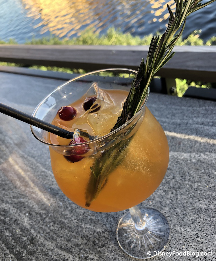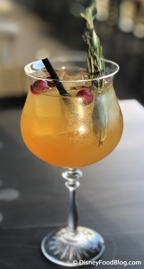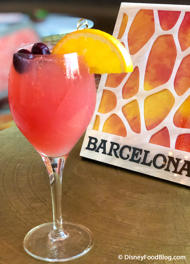 In the gorgeous Gran Destino Tower, we found a third secret holiday drink — a cranberry and blood orange sangria. We discovered it in the Barcelona Lounge. However, a Cast Member spilled a little tea and informed us that this secret holiday drink is also available in the Dahlia Lounge located on the 16th floor.