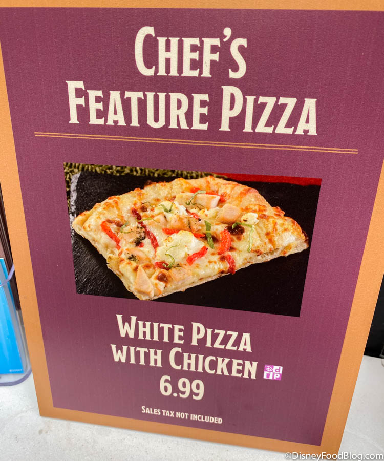 The Chef’s Feature Pizza is priced at $6.99 or a snack credit on the Disney Dining Plan.