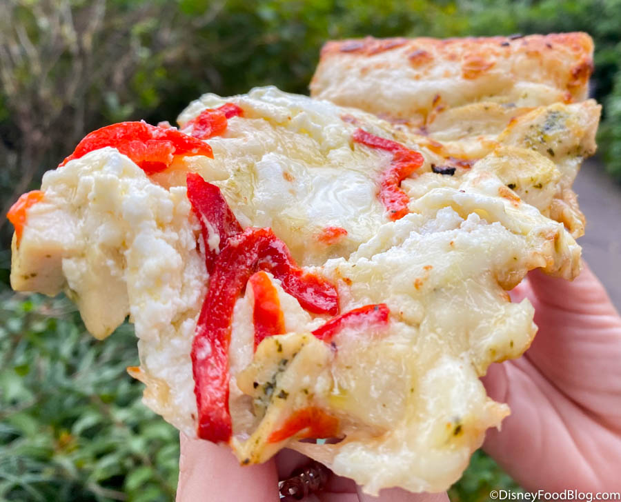 And the kicker? Many spots around the park are offering new treats just for the occasion! Now, we’re checkin’ out Terra Treats in Discovery Island where they are offering the Chef’s Feature Pizza in addition to the returning Tomato and Cheese Pizza.