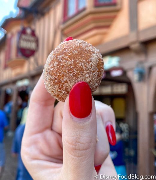The Cinnamon-Sugar Doughnuts are the sweetest way to start off the day! They are doughnut holes covered in cinnamon-sugar, available for $4.99 or a Disney Dining Snack Credit!