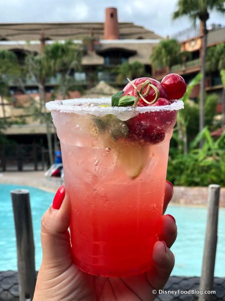 We’re making the journey over to Disney’s Animal Kingdom Lodge to try their Berry Merry Margarita! They’re pouring ’em up at Uzima Springs — Animal Kingdom Lodge’s pool bar!