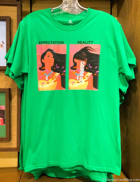 Next up, let’s hike it on over to Fort Wilderness where we found some new merch at Settlement Trading Post. We’re dying at this hilarious Expectation vs. Reality Pocahontas T-Shirt for $24.99 or $22.00 if you buy more than one.
