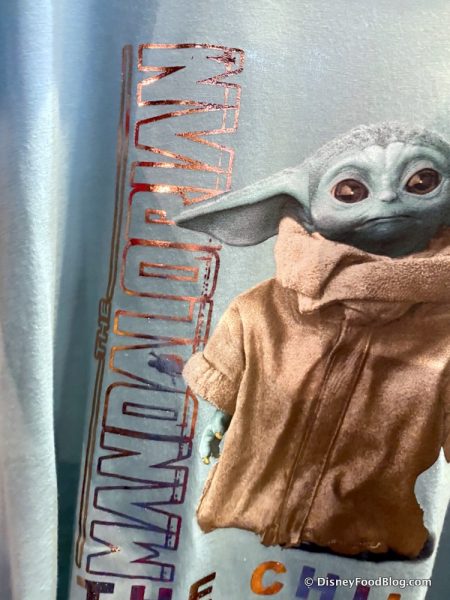 We saw the new Baby Yoda Shirts on a rolling rack at Mouse Gear in Epcot today — it looked like they had a bunch of sizes still in stock, but people were circling ’em like a ham on Christmas day, so best make haste if you see one you want!