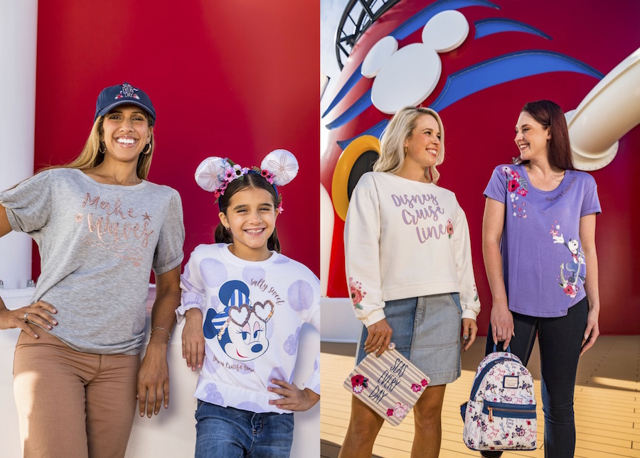 The ladies’ adult portion of the line includes items such as comfy T-shirts, sweatshirts and hoodies, a baseball hat, athletic wear, and a new Loungefly backpack with that cute Sail Away Minnie design.