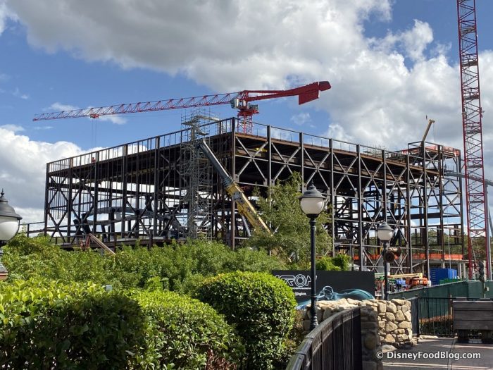 Beyond that, we have spotted construction around the entrance to Magic Kingdom as well as back in Tomorrowland, where the TRON Lightcycle Run coaster is rising up. In the France Pavilion of World Showcase, Remy’s Ratatouille Adventure nears completion as well as the new Creperie, and soon we should expect the UK Pavilion to begin work on the new Mary Poppins attraction!