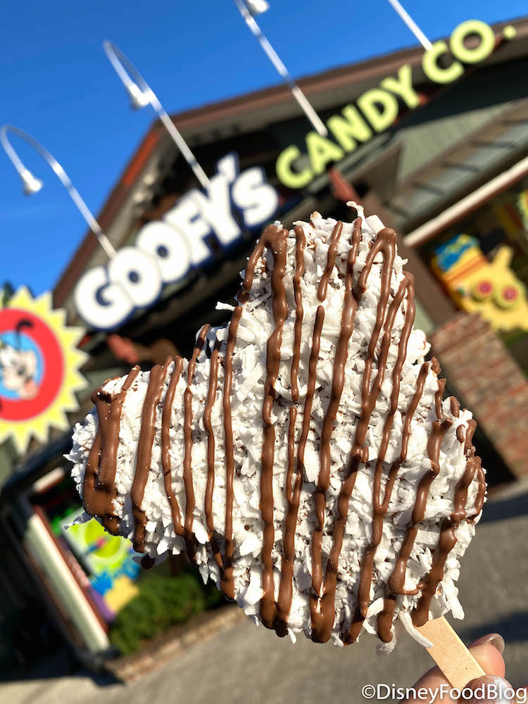 Even though you can get the pre-packaged Rice Krispies throughout the parks, few things beat a freshly baked Rice Krispie! If you do make your way to Goofey’s Cando Co., be sure to come early in the day since the Cast Members make a limited amount of Coconut Chocolate Rice Krispies. Or, you can always ask one of the bakers to make you a fresh one if they’re not out (aren’t the Cast Members the best?!).