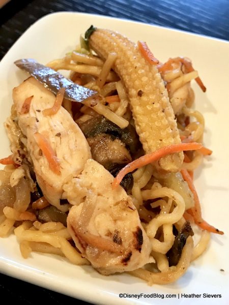 Instead, there’s a stir fry of chicken and noodles with some veggies.