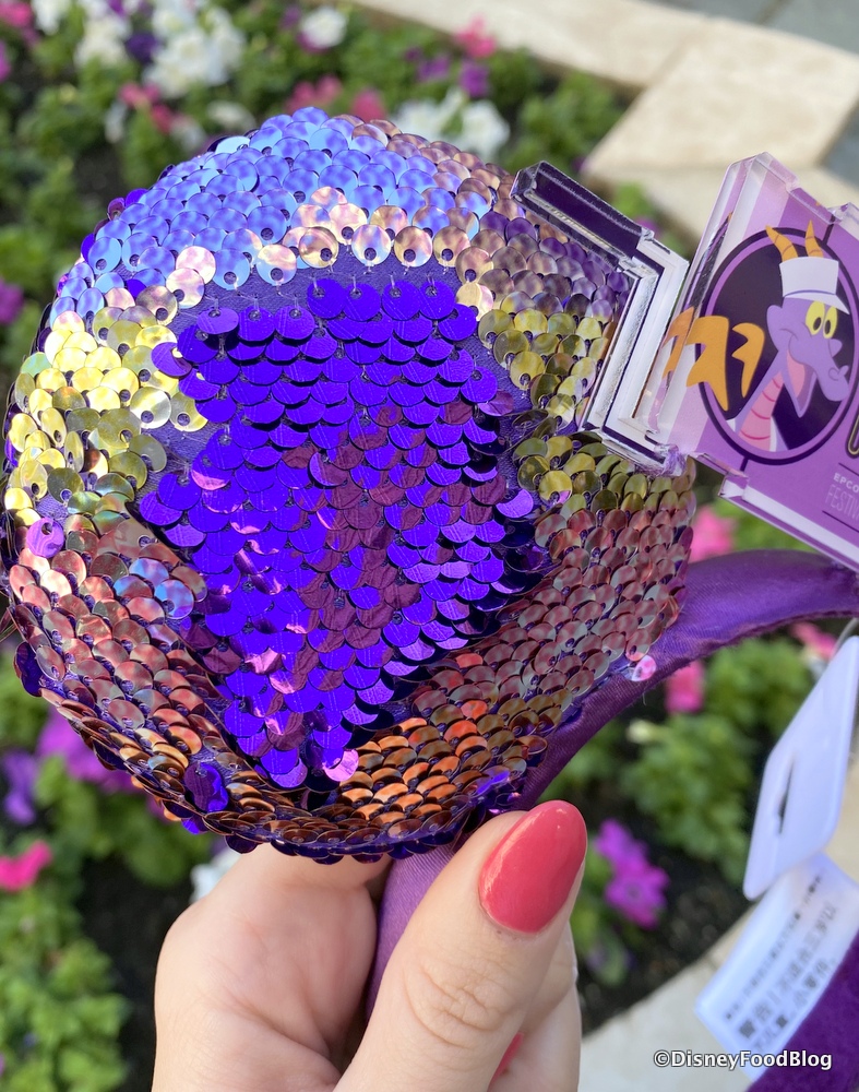 We love the multi-colored iridescent sequins both of the ears feature, in purple, yellow, and orange — Figment’s signature color palette!