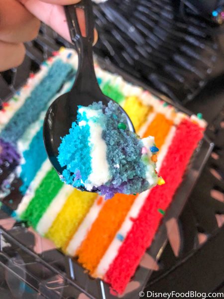 We picked up two of their offerings, including the Rainbow Cake Slice, which was available for $10.95. The cake came with six layers of vanilla cake, all dyed to make for a beautiful rainbow!