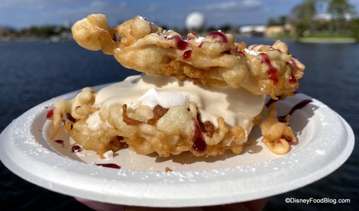 Peanut Butter & Jelly Sandwich Funnel Cake from The Funnel Cake Stand at the American Adventure Pavilion