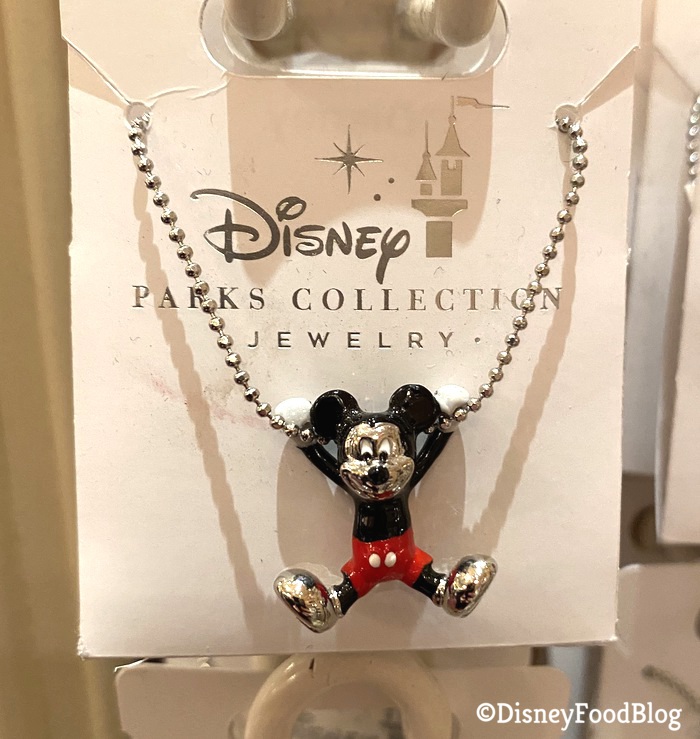 Here’s a close-up on the Mickey Mouse Necklace! He may be holding on for dear life, but he looks pretty casual about it! We love how this necklace comes in a silver metal finish and he’s painted with red, black, and white enamel accents!