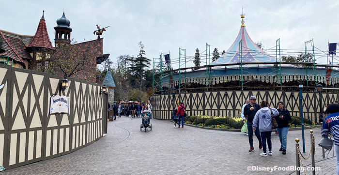 But that’s not all going on in Fantasyland! In fact, get used to the sight of those themed construction barriers because there are a lot of them! King Arthur Carrousel is out of commission as well. We’re not sure when this closure will end either but we’ll be sure to keep an eye out!