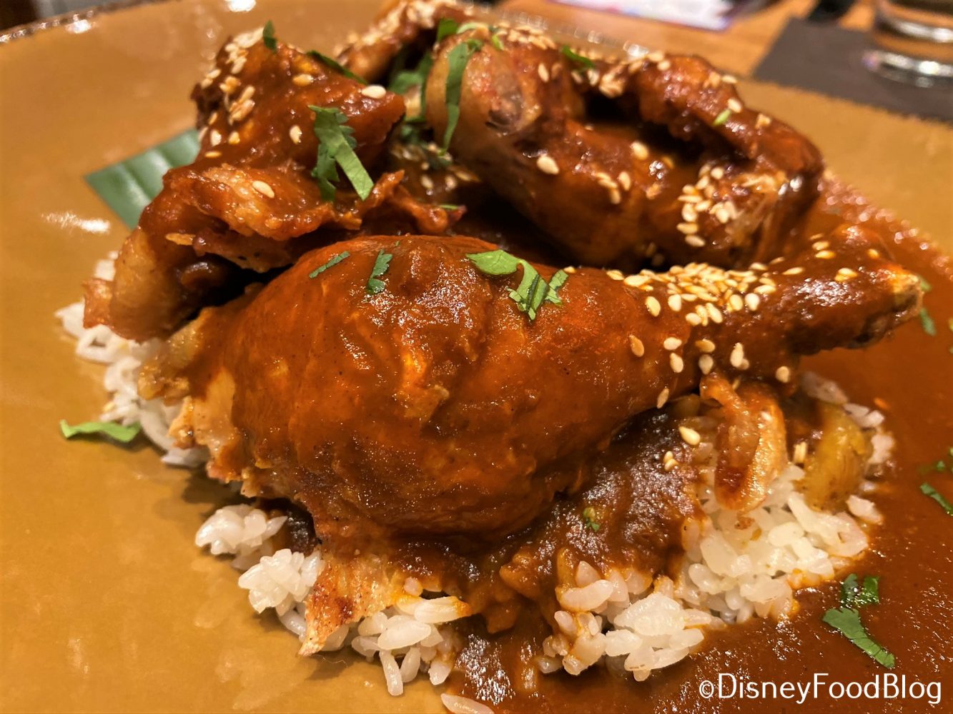 This dish is currently on the full-time Frontera Cocina menu, and we can see why! It’s half a roasted chicken served with Oaxacan red mole and plantain rice.