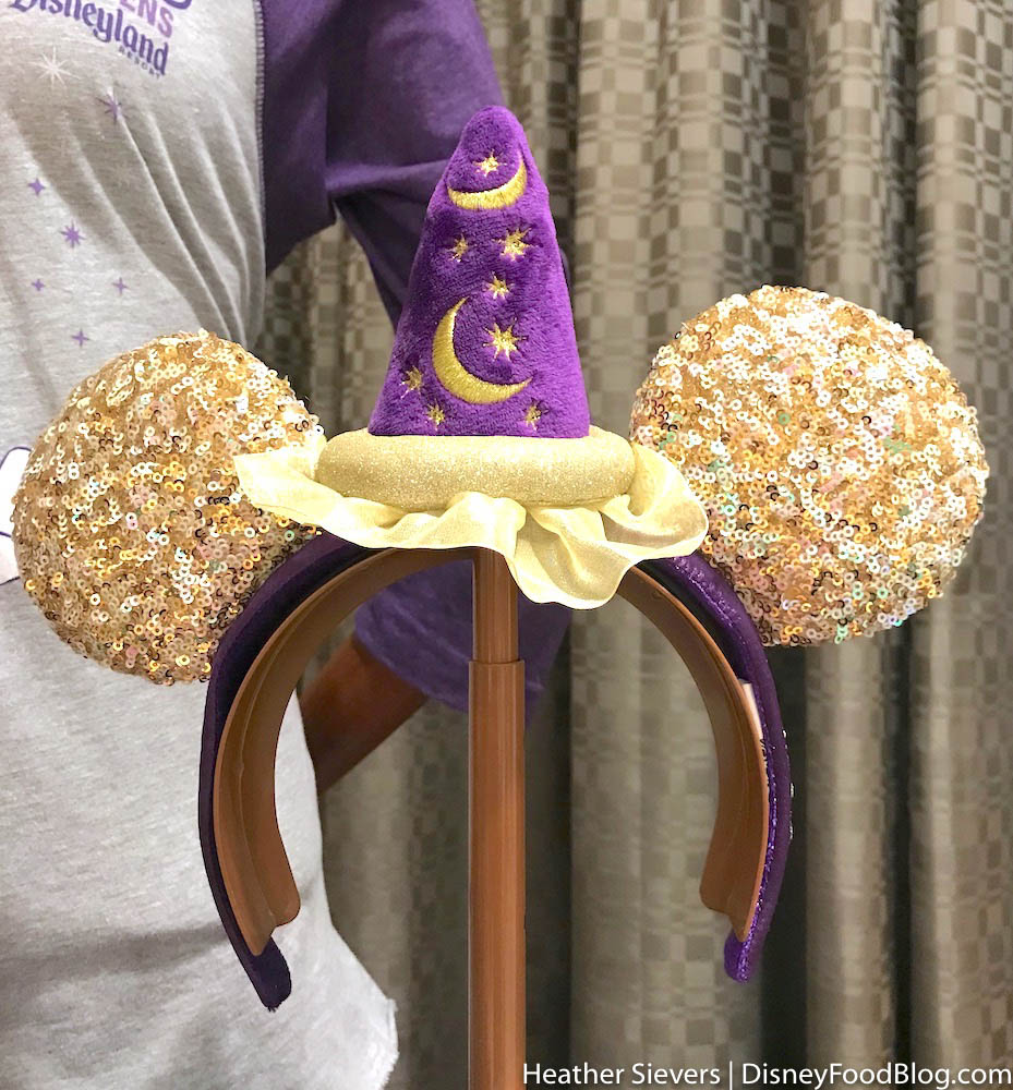 And, you can even join Mickey to enchant some broomsticks with the MEGA CUTE Magic Happens Ears! We are super digging the golden sequins on the ears and sparkles around the sorcerer hat.
