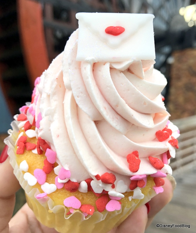 - Valentine’s Cupcake (Available at Disney’s Wilderness Lodge) – Chocolate cupcake with strawberry filling, ganache icing, and chocolate hearts