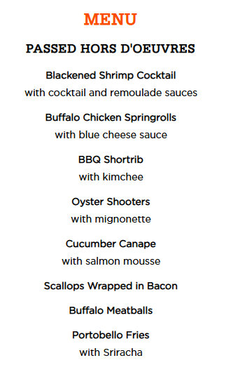 We certainly worked up an appetite by now! Food for the evening was in the form of passed hors d’oeuvres and included party favorites like Jalapeño Poppers, Buffalo Meatballs, Oyster Shooters and more.