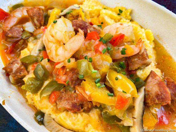 Out of all the ABC Commissary breakfast options, this was definitely our favorite! The grits were SUPER cheesy (the best part, duh), and went wonderfully with the shrimp. The sausage was tender and flavorful with the spicy kick from the peppers and onions!