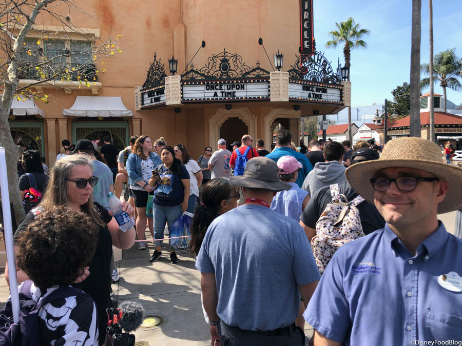 Here’s a look behind us! While this hasn’t been totally unusual since the grand opening of Rise of the Resistance, it was still a larger group of people waiting to enter the park!