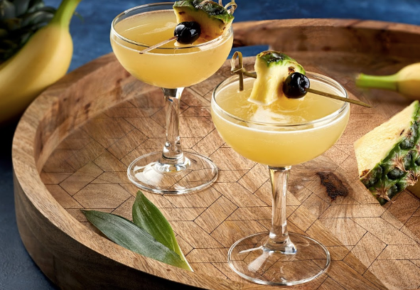 The Tropitini is getting us in the island mood with its mix of Malibu Rum, Gifford de Banana, orgeat, and pineapple juice. We just need a lawn chair and the beach!