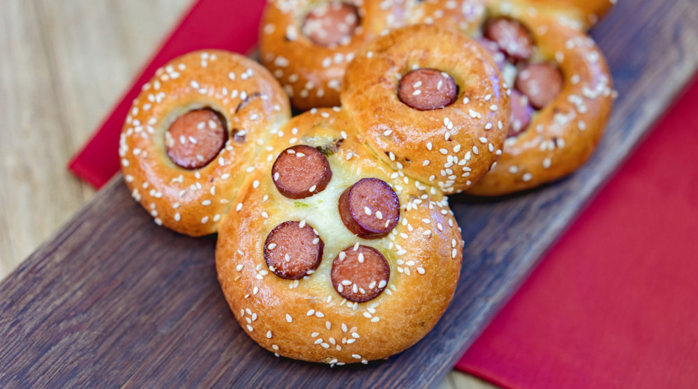 The Mickey Chinese Hot Dog Bun is one of our favorite snacks to enjoy at Disney California Adventure’s Food and Wine Festival. Alright, so maybe we don’t know the exact recipe, but we bet you could recreate something close enough with a can of refrigerated crescent dough, a sliced up hot dog and some sesame seeds.