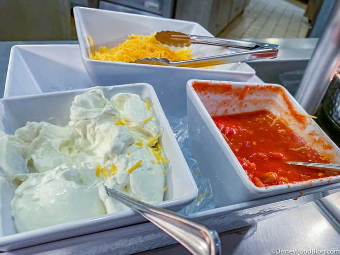 There was a small toppings bar for your tacos as well, with sour cream, salsa, and cheese.