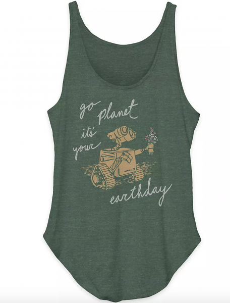 Of course, one of our favorite movies about the importance of taking care of the earth is Wall-E! That’s why we saved the two very best looks for last! Here’s the adorable Wall-E Tank Top for $24.99 with a fabulous birthday message for the planet! Oh Wall-E, you shouldn’t have!