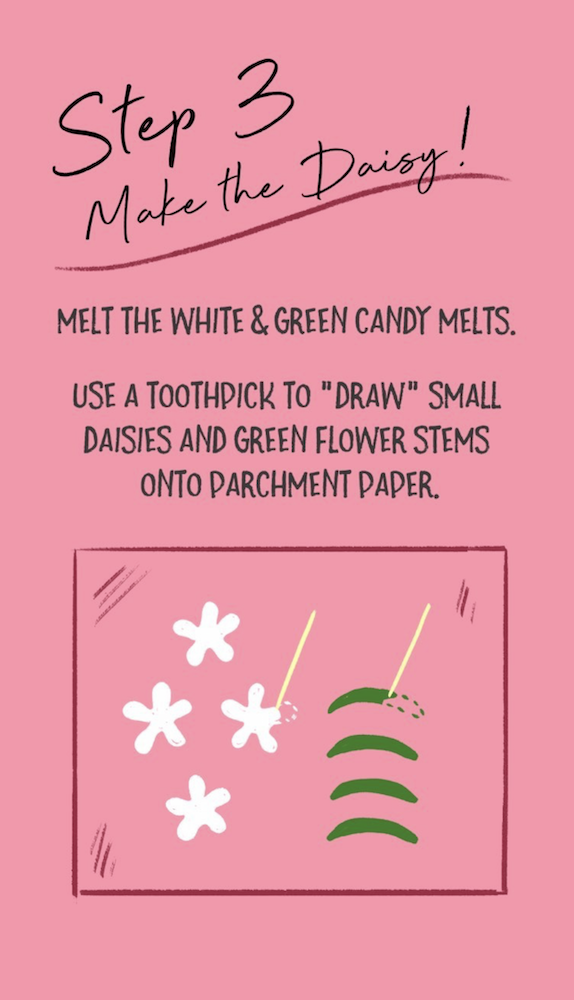 After you’ve placed the daisy on the hat to make the perfect cake accessory, you’ll need to frost the cakes!
