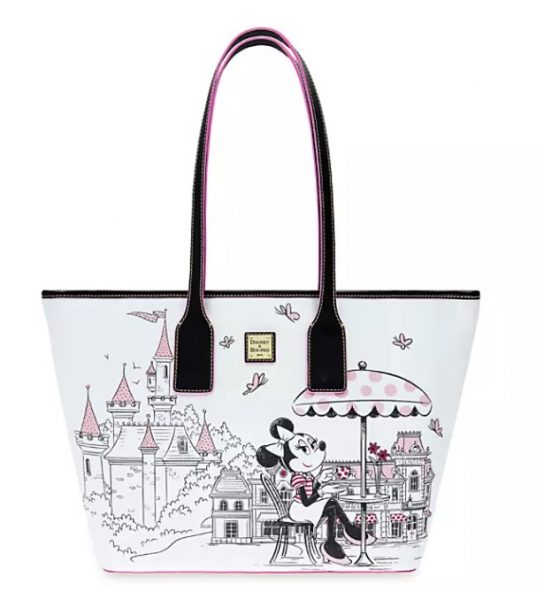 First up, take a peek at the GORGEOUS Minnie Mouse Tote! We love the feminine and springtime-y design. It looks like Minnie is sipping coffee on a stylized Main Street, U.S.A. Um…we’re jealous! Grab this tote for $268.