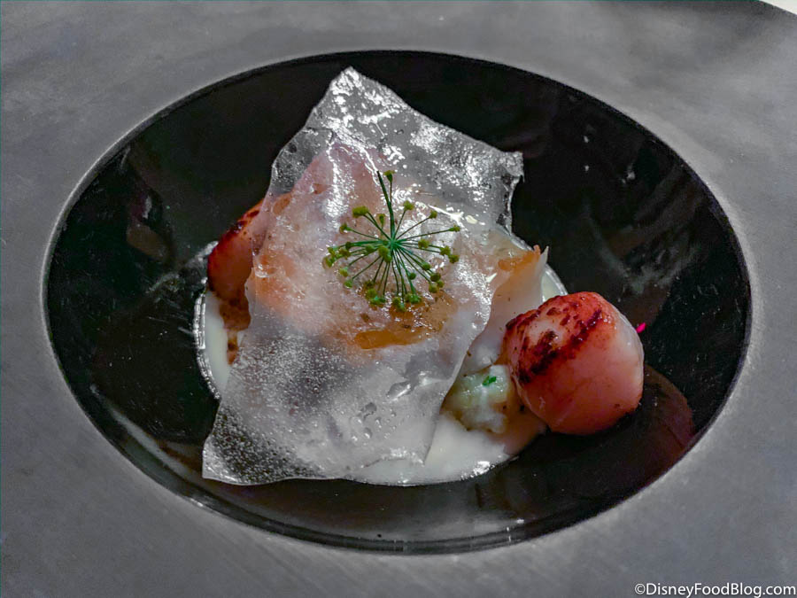The fish was very mild and delicious. That potato glass was really cool though. It melted on our tongues and tasted…like potatoes! The dill flower on top added a little extra boost of flavor and color.