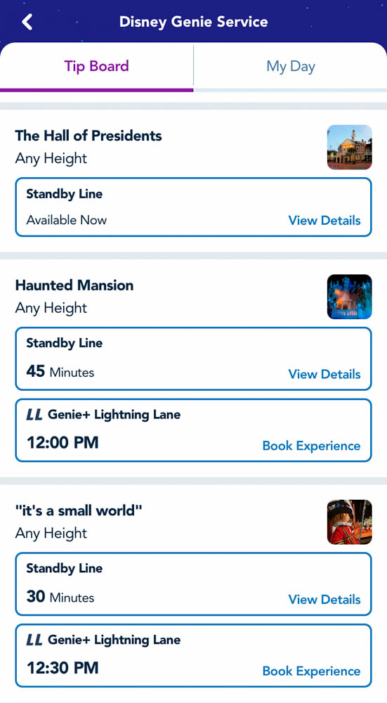 Here’s a lesser-known tip that you may not have heard of yet as it relates to Genie+ return times, Mobile Order times, and available Dining Reservations! If the My Disney Experience app shows that all return times are gone for the day for a ride you’re interested in, or for the time you wish to eat, swipe down on the page with the return times, and it’ll automatically refresh. Man, this app does a lot of heavy lifting! 😉