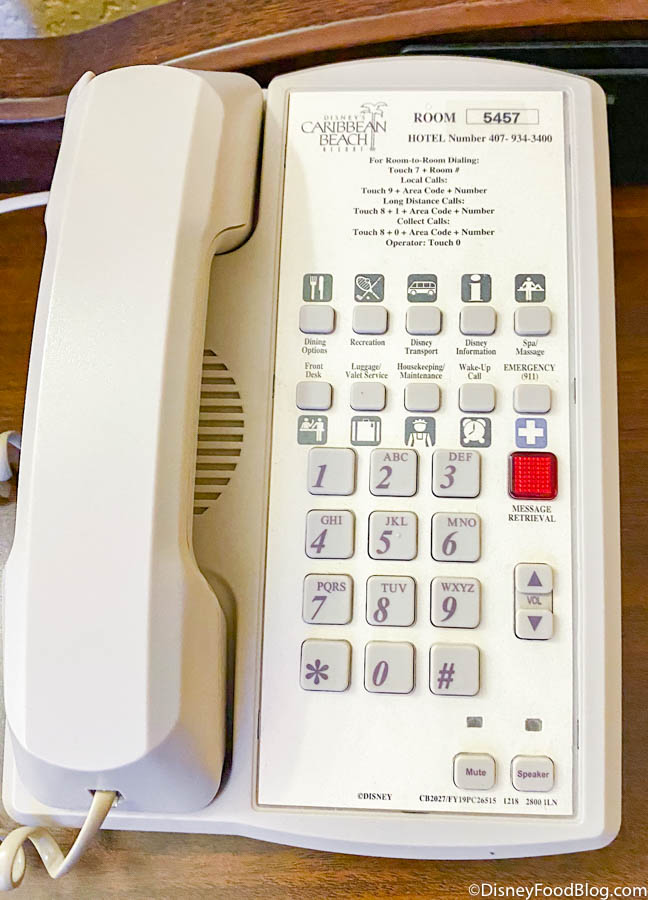 Each room is equipped with a standard Disney room phone with direct access to everything you could need while there (don’t forget to set a wakeup call from Mickey!).