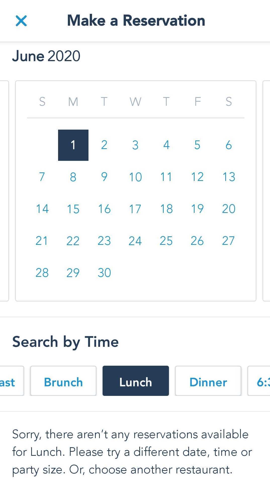 You might remember a few days ago we noticed that many of the dining locations at Disney Springs had reservations open on My Disney Experience. Now, though, it appears that Disney has started to pull those reservation options from the applications with almost every restaurant now unavailable through July.