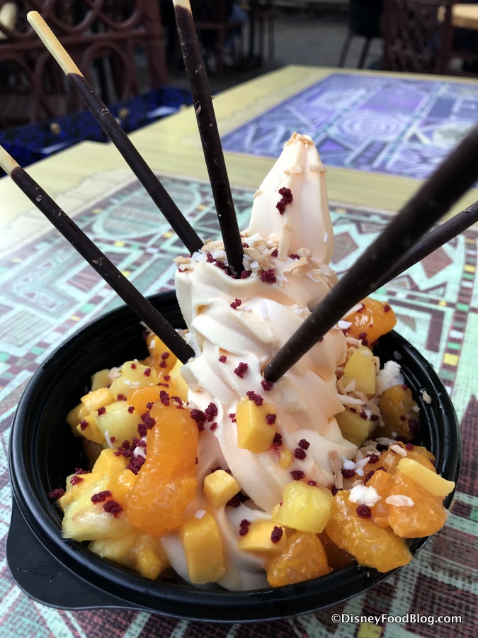 Recently we’ve tried the Twisted Ambush Loaded Dole Whip topped with fruit, crystalized hibiscus, and more…