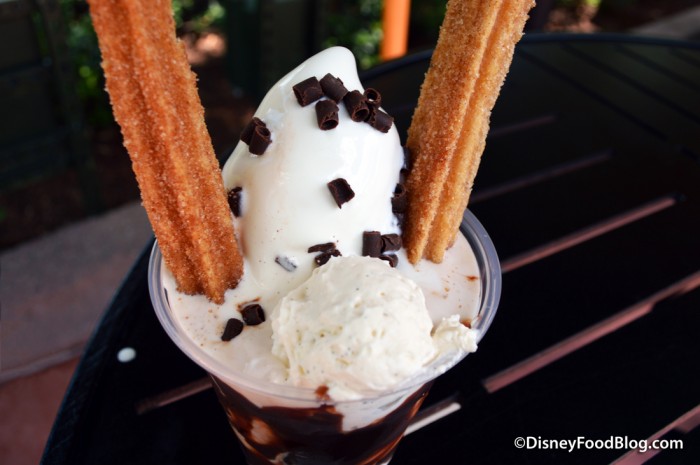 Buy a Churro FIRST (we usually get ours in Frontierland when in Magic Kingdom) then order up any scoop of ice cream or sundae of your choice (we’re fans of the wide selection of flavors over at Plaza Ice Cream Parlor)! Break up your churro over your ice cream or use it for dunking. It’s that easy!