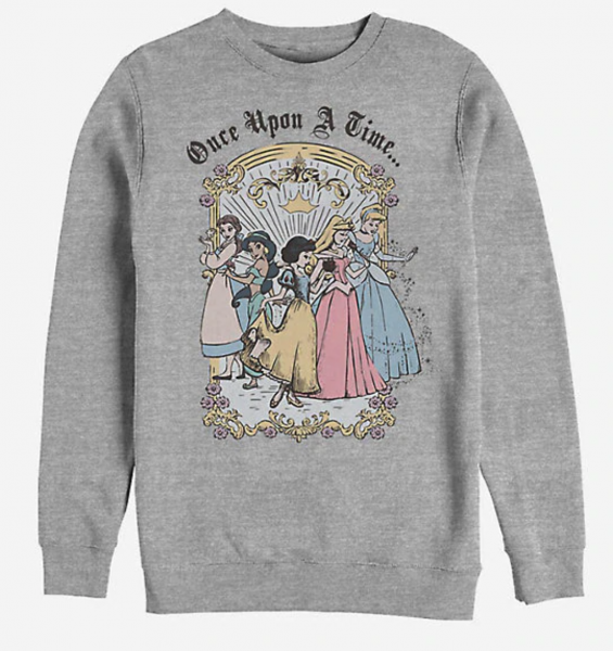 Snuggle in for this next item, because we found a super cute and super cozy crewneck sweatshirt for you to rock around the house! This sweatshirt features Belle, Jasmine, Snow White, Aurora, and Cinderella!