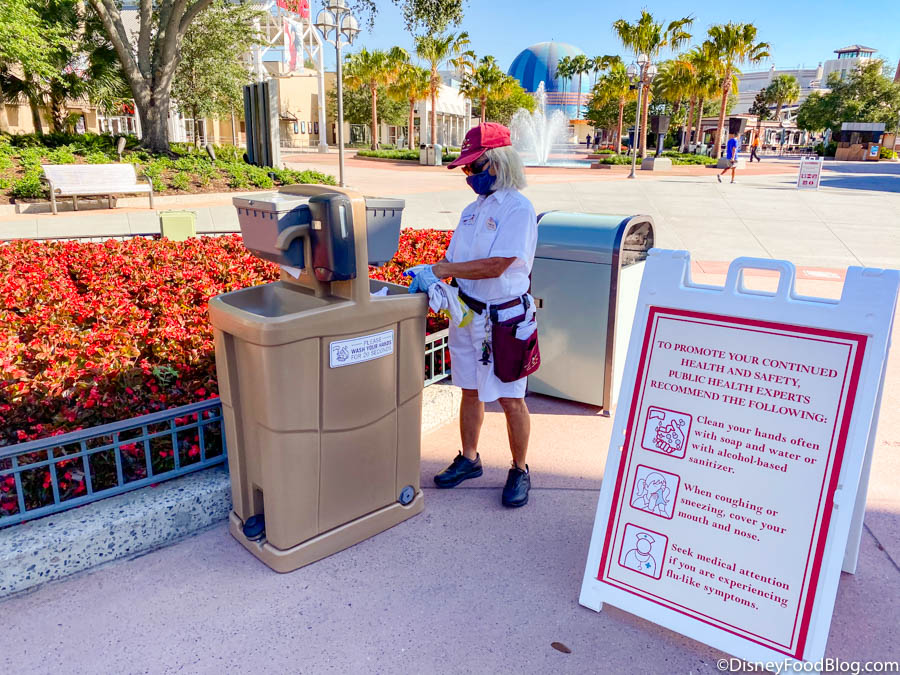 Additionally, guests are encouraged to make use of hand sanitizer and hand-washing stations placed throughout Disney Springs.