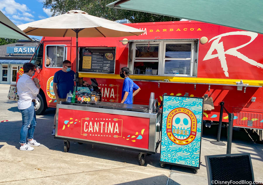 4 Rivers Cantina Barbacoa is the only food truck to be open in Disney Springs right now, and they’re not doing things quite like a typical food truck. Instead, there’s a stall located out front of the truck where you order with one employee so that the surfaces of the truck are kept clean.