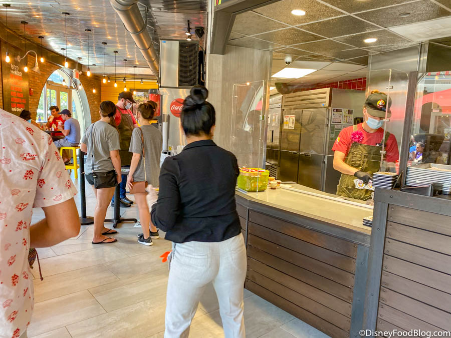 We’ve been busy sharing with you our own guest experiences such as parking at Disney Springs, having our temperatures taken, and seeing what some of the recently reopened retail stores have been like inside. Now want to share with you what it’s like to dine at Disney Springs right now. Do note that each location is doing things a little differently!