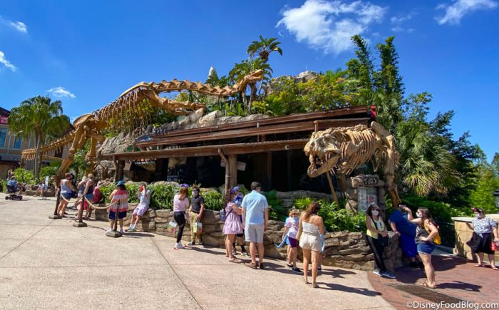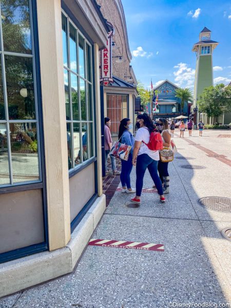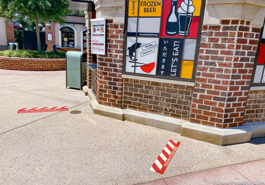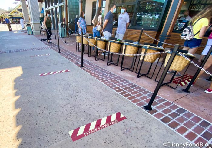 Finally, we took a trip over to Sunshine Churros to see what kind of changes this kiosk had. Like everywhere else, we saw ground stickers to keep guests’ distances.