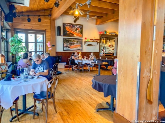 The interior of The Boathouse looked similar to how we remember it, but they had taken away chairs from certain tables and placed black table cloths over them to denote guests were not to be seated here.