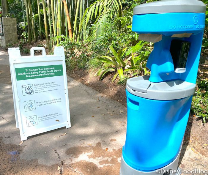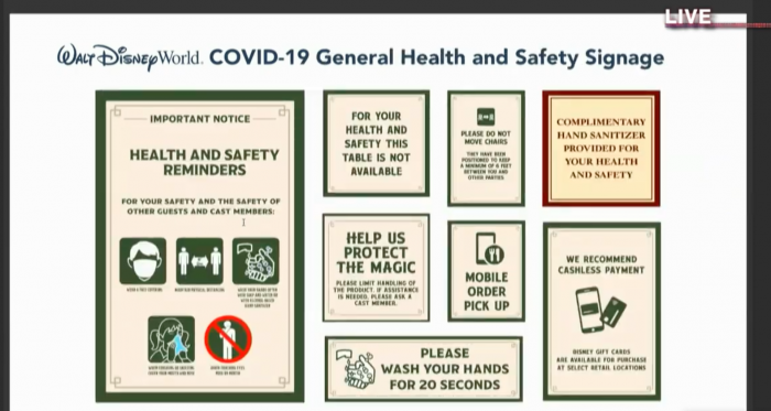 Hand-washing and sanitizing stations and signage reminders will be posted throughout the theme parks, both on stage for guest access and backstage for Cast Member access.