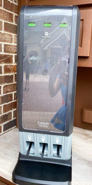 Looking ahead to the Food and Wine Festival, we wouldn’t be surprised if these new dispensers were placed at each one of the outdoor food booths! We can probably expect to see these at counter service locations when the parks reopen, too.