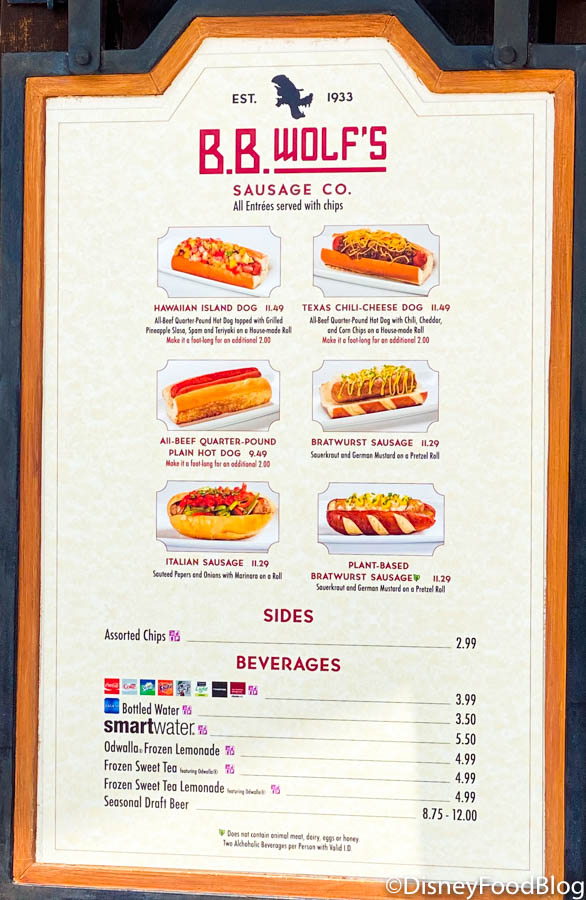 That’s right, little piggies! B.B. Wolf’s Sausage Co. officially reopened yesterday! According to the Cast Member we spoke with, they’re operating with only a slightly smaller menu.