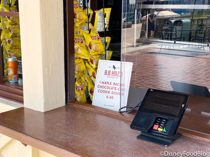 We also noticed B.B. Wolf’s Maple Bacon Chocolate-Chip Cookie Dough was no longer listed on its permanent menu! It’s still available, but this rather temporary-looking pop-up sign gave us a moment of pause!